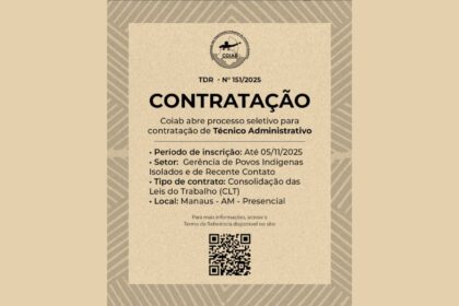 Coiab lança seleção para vaga de técnico administrativo em Manaus